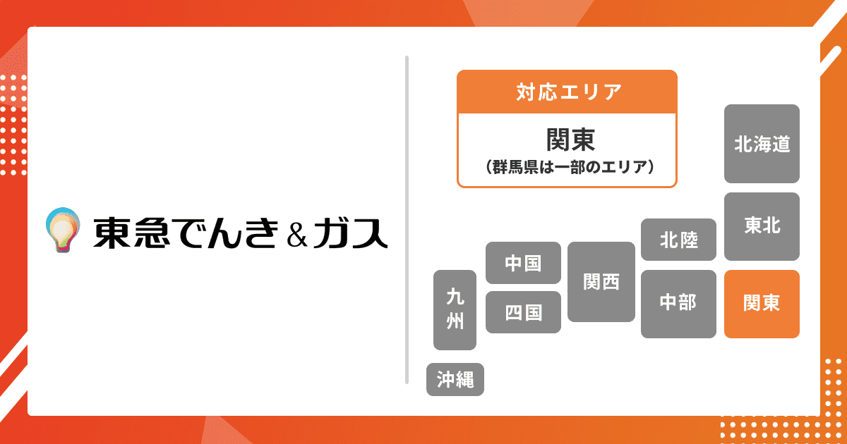 | 対応エリア | 東京都、神奈川県、埼玉県、千葉県、茨城県、栃木県、群馬県、山梨県、静岡県(富士川以東) ※ガスは東京ガス供給エリアに準ずる |